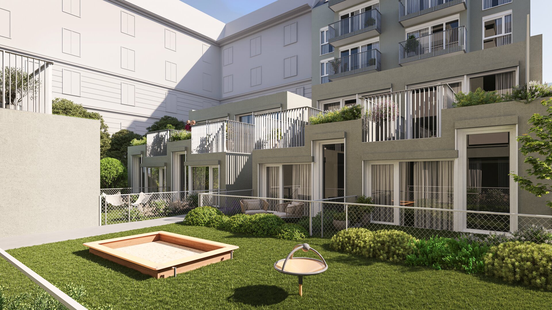Das Wohnprojekt umfasst 52 moderne Wohneinheiten, verteilt auf zwei Gebäude. Alle Wohnungen verfügen über durchdachte, effiziente Grundrisse und sind bereits mit neutralen weißen Einbauküchen ausgestattet. Der Großteil der Einheiten bietet zusätzlich private Freiflächen wie Balkone, Terrassen oder Gärten.