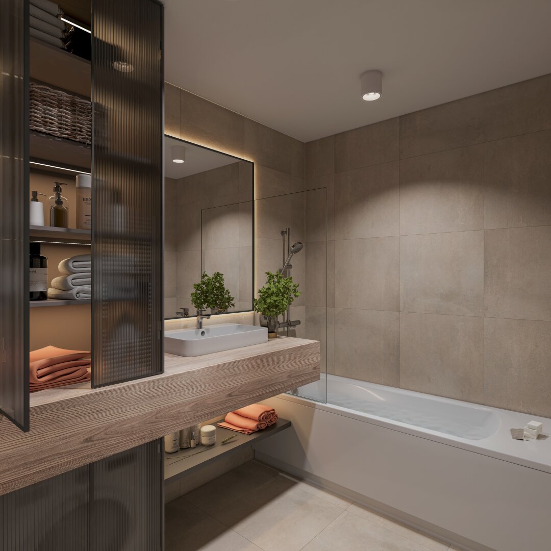 Großzügige Grundrisse, helle Räume und natürliche Materialien schaffen ein Gefühl von Wärme und Geborgenheit – ein Zuhause, das mit seinen Bewohner:innen wächst. Weitläufige Grünflächen, Begegnungszonen und zwei Kleinkinderspielplätze fördern Gemeinschaft, während private Gärten, Balkone und Terrassen Raum für Rückzug und Ruhe bieten.