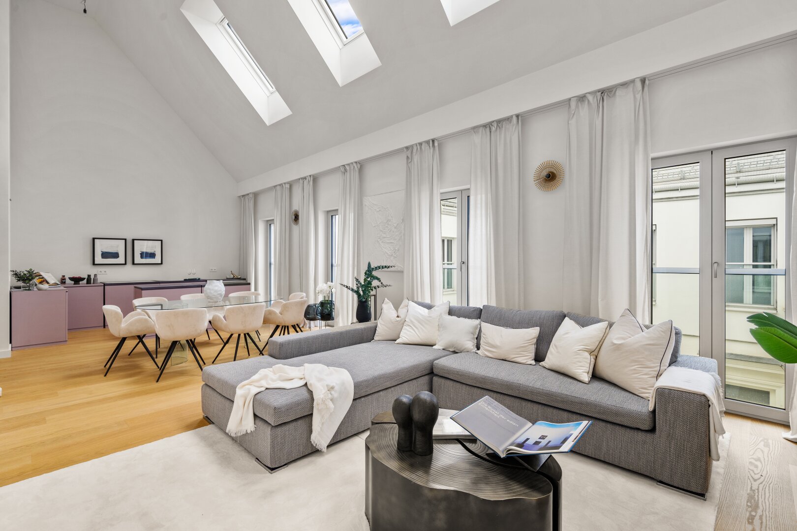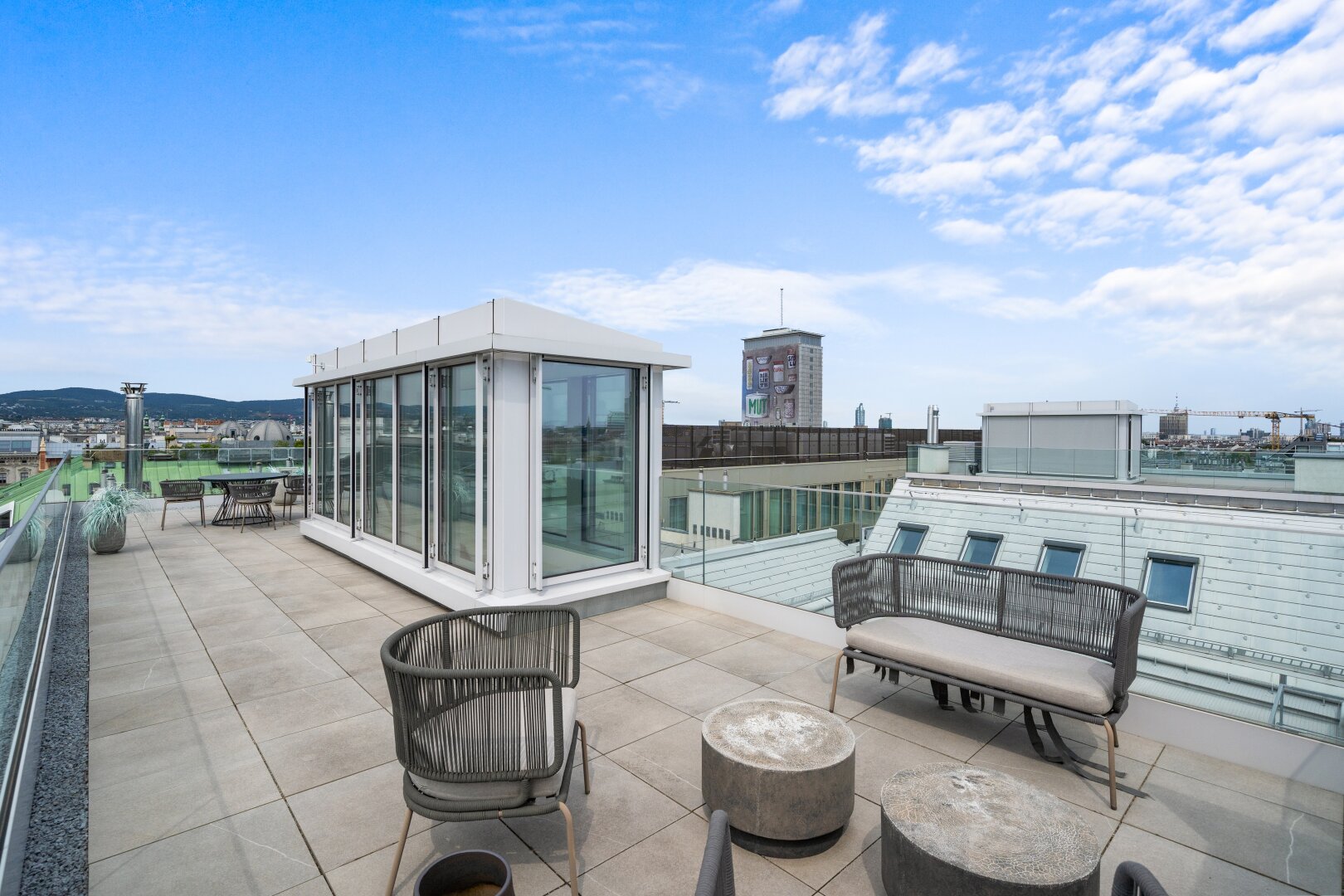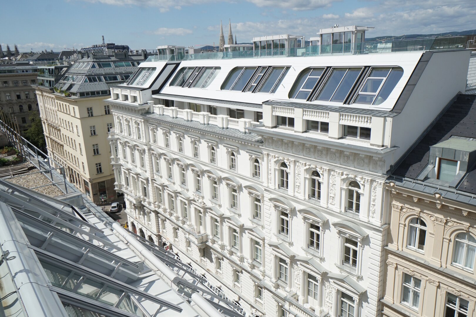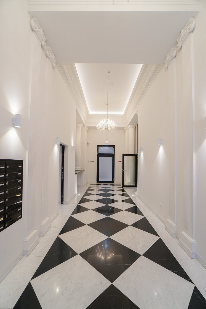 In den Stiletagen entstanden elegante Apartments im klassischen Wiener Altbaustil, im Dachgeschoss moderne Penthouses mit Terrassen, deren Blick über die Dächer Wiens den Atem anhalten lassen. Die Apartments bieten den idealen Rahmen für anspruchsvolle Wohnkultur mit einer Verknüpfung von historischer Bausubstanz und modernem Wohnraum mit Smart-Steuerung der Elektroanlagen.