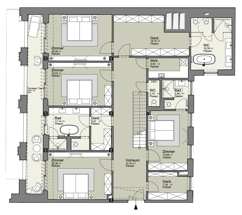 Inmitten der prachtvollen Gebäude der Wiener Innenstadt wurde mit dem imposanten Gebäude „Am Werdertor“ eine neue Adresse der Extraklasse geschaffen. Die vorhandene Struktur und Eleganz des Gebäudes wurde perfekt hervorgehoben, während im Inneren mondänes Design, großzügige Raumgestaltung und Dachterrassen luxuriöses Wohngefühl versprühen.